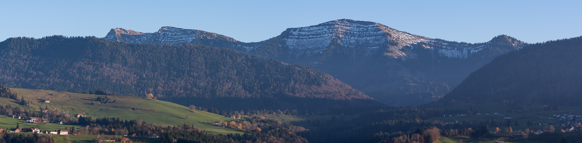 Nach herrlichem Tag auf dem Grat ein Abschiedsbild um ca. 16.15 Uhr von unten. 85 mm x 5.