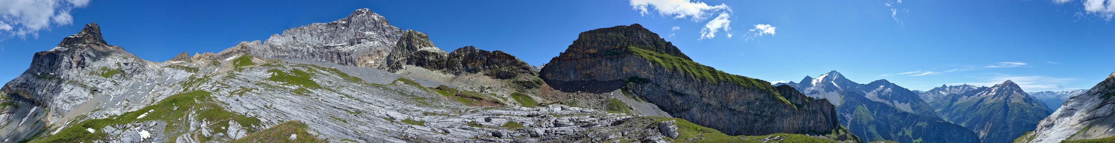 Beim Abstieg vom Schwarzstöckli 2614 m vor 2½ Jahren habe ich noch dieses Panorama gemacht. Das Schwarzstöckli, das ich über en Grat von rechts nach links überschritten habe zeigt sich hier vom Weg zu den Kl. Windgällen in seiner ganzen Breite.