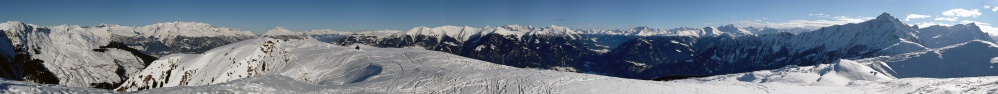13 Breitaufnahmen, Panasonic "Lumix" TZ3, ca. 35 mm Brennweite, Belichtung 1 Strich minus, "Schnee-Automatik". Freihand! (Glücksache) 13.30 Uhr.