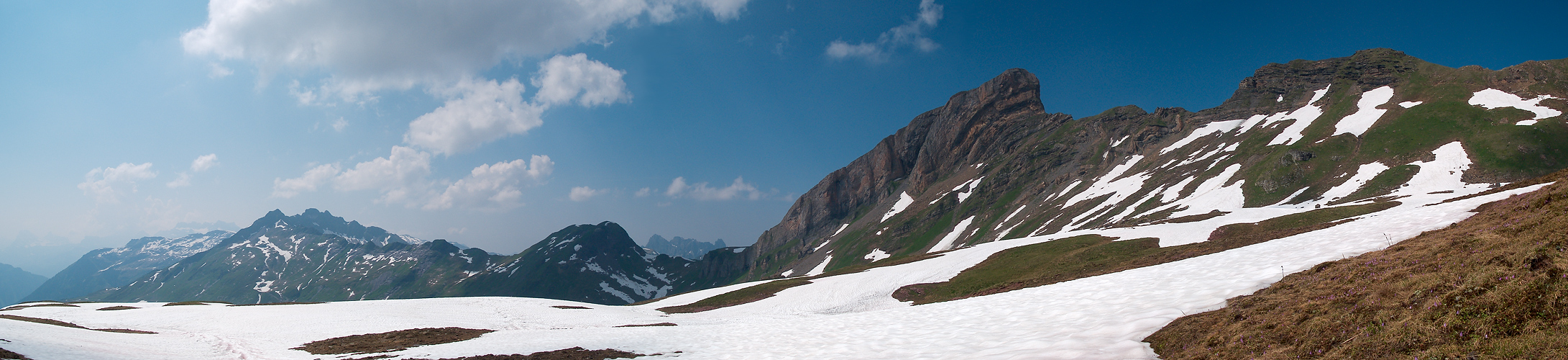 Aufgenommen beim Aufstieg zum Wissmilen während meiner Tour von Murg (am Walensee) durch das Murgtal zum Widersteiner Furggel, weiter zum Wissmilen und zurück via Maschgenkamm, Tannenboden nach Mols (am Walensee). 5 Einzelbilder bei 34 mm (KB), Blickwinkel ca. 120 Grad.