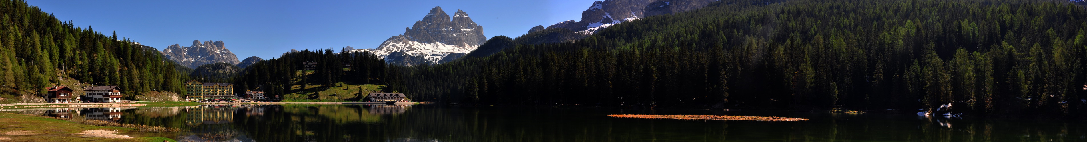 In der rechten Hälfte vom Pano beindruckt tolles Licht, die Farben, die Spiegelung im See, die linke Hälfte vom Pano versumpft ins Schwarz.